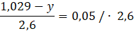 (1,029 – y) : 2,6 = 0,05 / ∙ 2,6