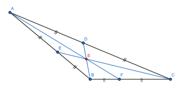 |BE|, |AD|, |CF|–środkowe trójkąta