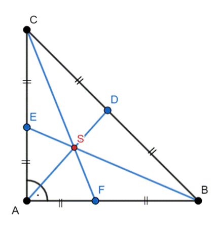 W tym zadaniu skorzystaj z twierdzenia o środkowych w trójkącie i wykorzystaj definicję o środku ciężkości w trójkącie.