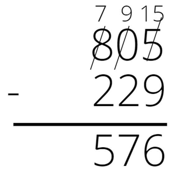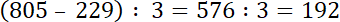 (805 – 229) : 3 – liczba klocków zielonych