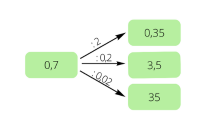 0,7 : 2 = 0,35