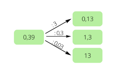 0,39 : 3 = 0,13