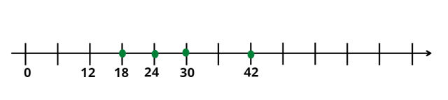 Zauważ, że jeden odcinek ma długość 6, dlatego by otrzymać następną liczbę, dodawaj 6 do każdej poprzedniej liczby na osi liczbowej.