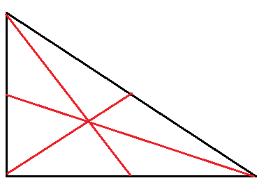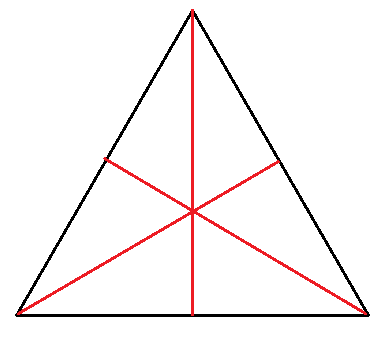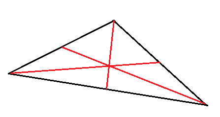 Aby narysować środkowe połącz środek boku trójkąta z przeciwległym wierzchołkiem. Środkowe w trójkącie zawsze przecinają się w jednym punkcie wewnątrz trójkąta, który jest środkiem ciężkości trójkąta.