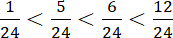 Nie musisz porównywać ułamków w tym zadaniu. Wystarczy, że porównasz liczby grządek przeznaczonych na uprawę poszczególnych roślin i zapiszesz odpowiadające im ułamki w kolejności rosnącej.