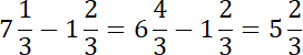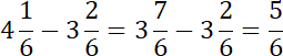 Licznik to liczba, która znajduje się nad kreską ułamkową, a mianownik – pod kreską. Dodawanie i odejmowanie ułamków, których mianowniki są takie same, polega na wykonywaniu działań na samych licznikach. Jeżeli w odejmowanie ułamek w drugiej liczbie jest większy to należy z liczby większej odejmując jedną całość zwiększyć licznik o wartość mianownika.