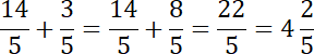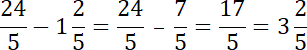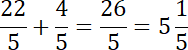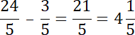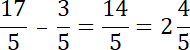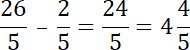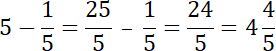 Wykonując odejmowanie lub dodawanie to dodajesz lub odejmujesz od siebie liczby, które znajdują się nad kreską ułamkową, liczby pod kreską ułamkową muszą być takie same. Jeżeli w zadaniu występuje ułamek zawierający w swoim zapisie cyfrę całości to musisz zamienić ją na ułamek niewłaściwy, czyli 5 =