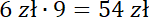 Oblicz, ile kosztuje pranie kwadratowego dywanu o boku 3 m, jeśli pranie kosztuje 6 zł za 1 m2.