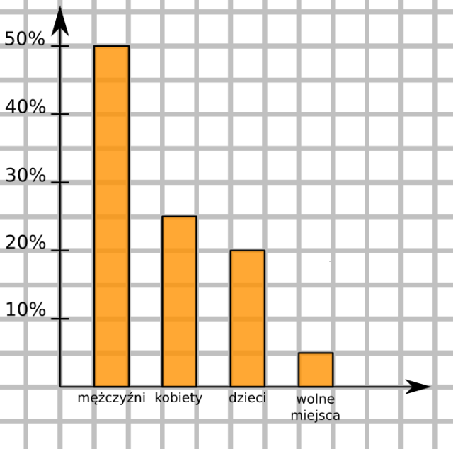 W tym zadaniu musisz przedstawić na wykresie, kto zajął miejsca na widowni podczas meczu siatkówki. Wiesz, że mężczyzn było