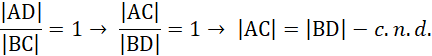 Oba trójkąty są do siebie przystające z cechy bok – kąt – bok. Ponadto, jeżeli wiemy, że |AD|=|BC| to jesteśmy w stanie wyznaczyć stosunek podobieństwa tych dwóch trójkątów: