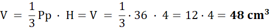 Zauważ, że skoro jest to ostrosłup prawidłowy to w podstawie mamy kwadrat. Objętość ostrosłupa obliczamy stosując wzór: