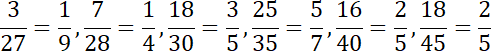 Licznik i mianownik kolejnych ułamków podziel przez: 3, 7, 6, 5, 8 i 9.