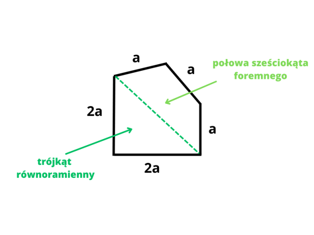 Podstawa składa się z trójkąta równobocznego oraz połowy sześciokąta foremnego: