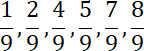 W tym zadaniu musisz spośród ułamków mniejszych od 1 o mianowniku 9 wybrać te, których nie da się skrócić.