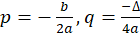 Współrzędne wierzchołka paraboli to p i q. Oblicz je ze wzorów