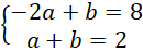 Musisz podstawić podane współrzędne punktów tak, by otrzymać współczynniki a i b wzoru na funkcję.