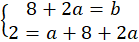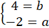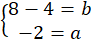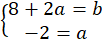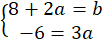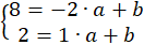 Oblicz b z pierwszego równania, podstaw b do drugiego równania i oblicz a: