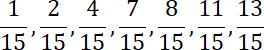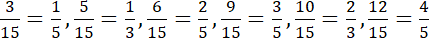 W tym zadaniu musisz spośród ułamków mniejszych od 1 o mianowniku 15 wybrać te, których nie da się skrócić.