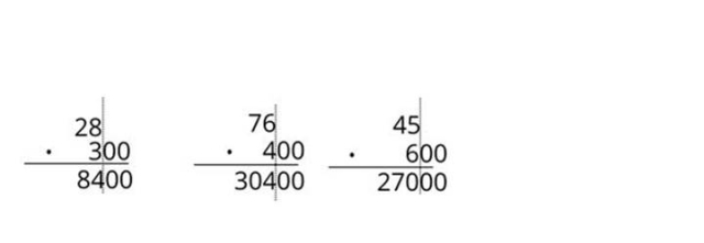 Oblicz pisemnie 28 ×300, 76 ×400, 600 ×45.