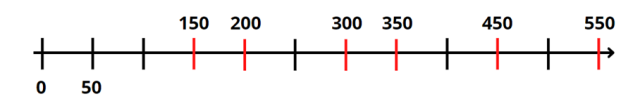 Na tej osi liczbowej odcinek jednostkowy wynosi 50.