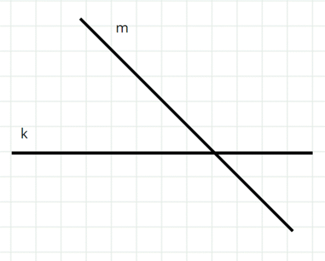 Narysuj prostą k i prostą m, która ma z nią 1 punkt wspólny.