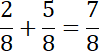 Na rysunku widzimy dodawanie ułamków. Zapisz działanie i uzupełnij luki.