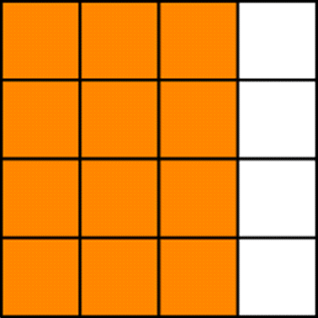 Narysuj kwadrat, podziel go na 4 pionowe paski i pokoloruj 3 z nich.