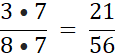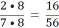 Teraz mianownik i licznik należy pomnożyć przez taką liczbę, aby iloraz w mianowniku dawał 56: