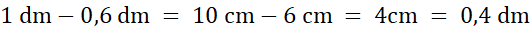 Oblicz różnicę 1 dm – 0,6 dm; zasugeruj się rozwiązaniem w przykładzie 2.