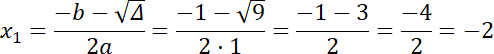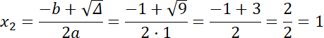 ∆ = b2 – 4ac = 12 – 4 · 1 · (–2) = 9