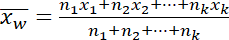 Średnią ważoną liczb x1, x2, …, xk odpowiadającymi im wagami n1, n2, …, nk, będącymi liczbami dodatnimi, określamy wzorem: