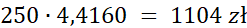 Sprzedając 250 euro, otrzymamy: