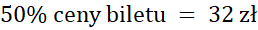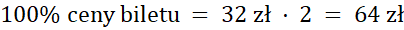 Odpowiedz na pytania, wykonując obliczenia w pamięci: podaj cenę biletu, którego 50% jest równe 32 zł.