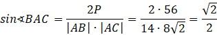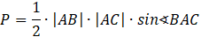Przekształć wzór, w którym pole jest równe połowie iloczynu długości 2 boków i sinusa kąta pomiędzy nimi. Na postawie obliczonego sinusa, wyznacz miarę kąta.