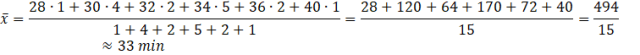 Oblicz średni czas uzyskany przez zawodników w biegu przełajowym: