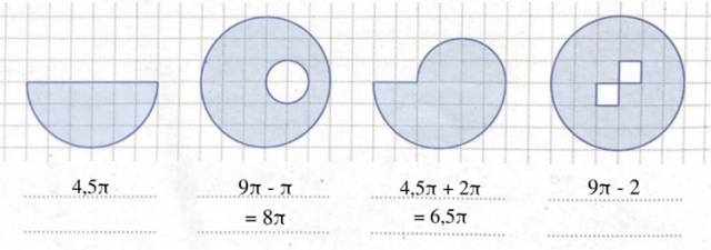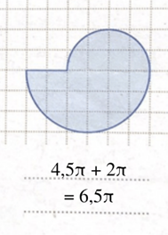 Jest to połowa koła o promieniu 3, dlatego pole tej figury to 32π : 2 = 9π : 2 = 4,5π