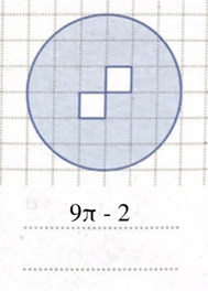 Jest to koło o promieniu 3, od którego musisz odjąć 2 pola kratek o boku 1 (ich pole też jest równe 1), czyli: