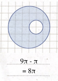 Z racji, że pole jednej kratki ma 1, możesz wywnioskować to, że bok jednej kratki to również 1. Oblicz pola kół i odejmij lub dodaj pola niektórych części figury.