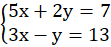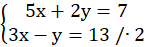 Pomnóż drugie równanie przez 2, aby otrzymać przy niewiadomej y liczby przeciwne, a następnie dodaj do siebie równania.
