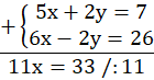 Dzięki temu wyliczysz jedną niewiadomą, którą następnie podstaw do jednego z równań i wylicz drugą niewiadomą.