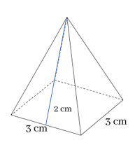 Wiedząc, że krawędź podstawy ostrosłupa prawidłowego czworokątnego ma długość 3 cm, a wysokość ściany bocznej 2 cm, spróbuj go narysować.