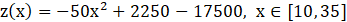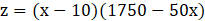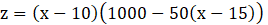 Podaj wzór opisujący zysk roczny sprzedaży pluszowych misiów, jeżeli koszt produkcji jednej sztuki wynosi 10 zł, obecna cena za misia to 15 zł i szacuje się sprzedać 1000 sztuk (rocznie), a każdorazowy wzrost ceny o 1 zł zmniejsza sprzedaż o 50 sztuk.