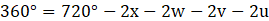 Kąt środkowy BOD jest oparty na takim samym łuku jak kąt wpisany BCD. Zatem, kąt dcb jest równe podwojonemu kątowi BOD. Suma miar kątów w każdym czworokącie wynosi