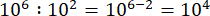 Dzieląc potęgi o tych samych podstawach, musisz odjąć od siebie wykładniki, podstawy zostają bez zmian.