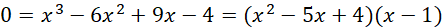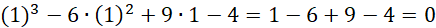 Znajdź pierwiastek całkowity wśród dzielników wyrazu wolnego tj. -4, -2, -1, 1, 2, 4.