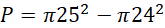 W tym zadaniu musisz obliczyć pole pierścienia kołowego, jeśli jego promień zewnętrzny ma długość 25 cm, a promień wewnętrzny - 24 cm. Następnie oblicz promień koła, którego pole jest równe polu tego pierścienia.