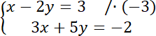 Zauważ, że całe pierwsze równanie należy pomnożyć przez (-3), aby współczynniki znajdujące się przy