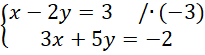 Zauważ, że całe pierwsze równanie należy pomnożyć przez (-3), aby współczynniki znajdujące się przy