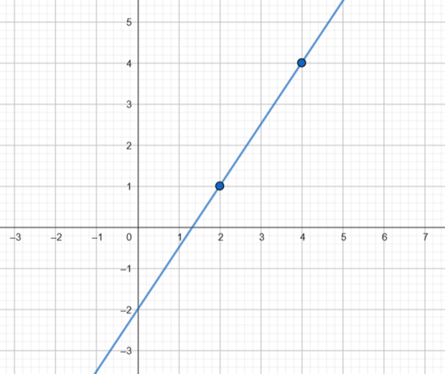 Następnie zaznacz uzyskane punkty w układzie współrzędnych i narysuj prostą przechodzącą przez nie, czyli wykres funkcji