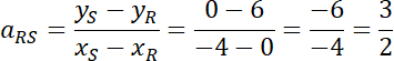 Skorzystaj ze wzoru na współczynnik kierunkowy prostej i oblicz jego wartość dla podanych punktów P i Q oraz R i S.